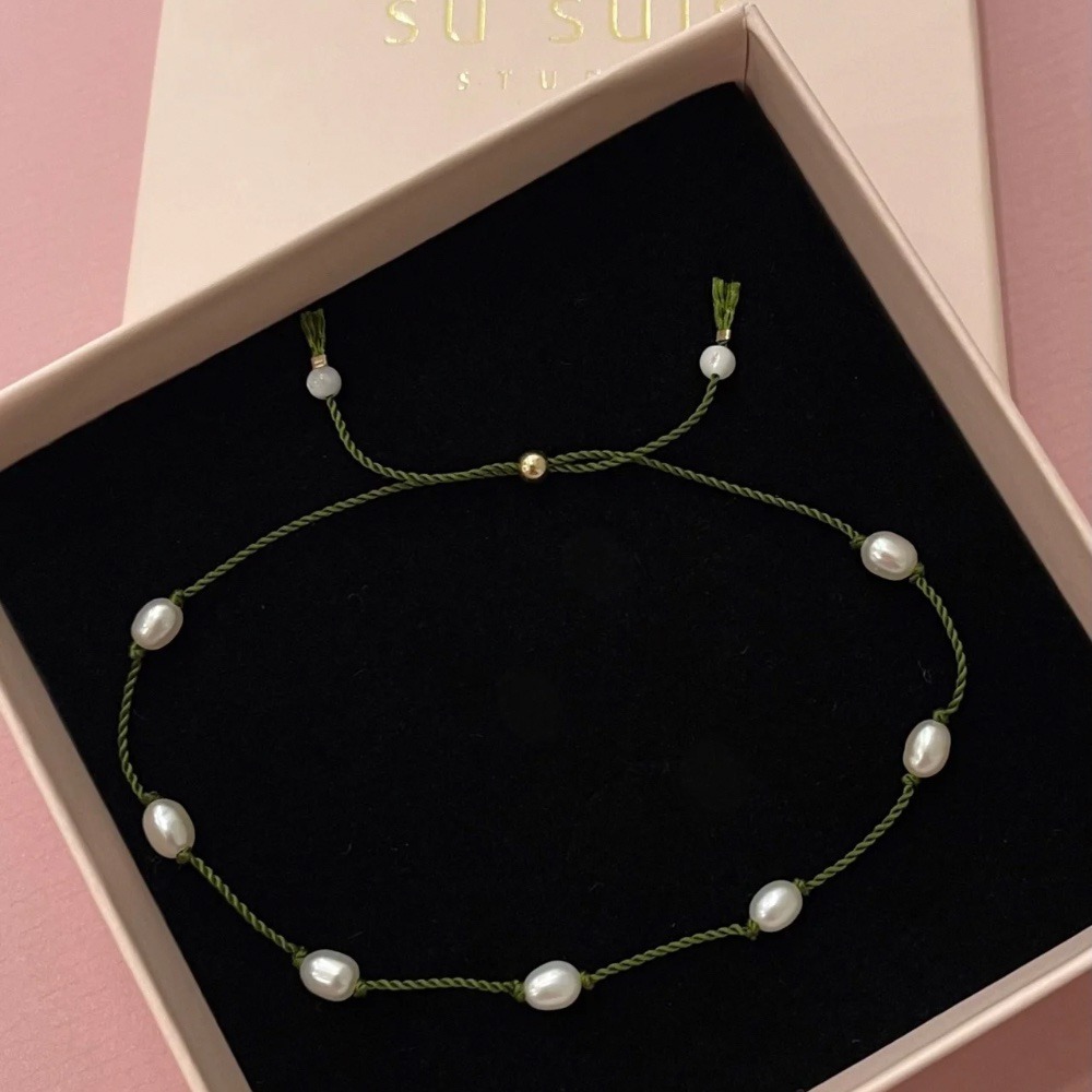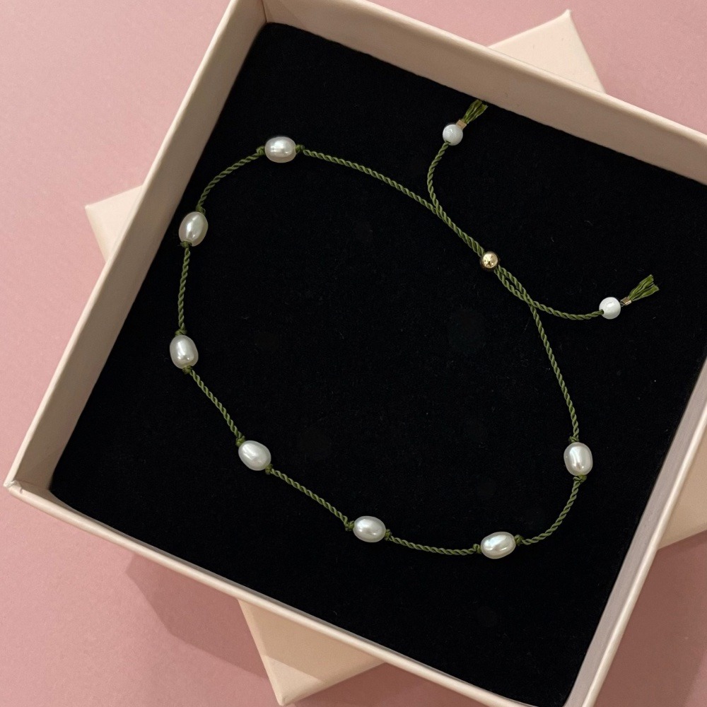 Pearl Love Bracelet Green • 14k Gold Filled • Adjustable in size